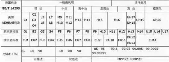 从下图对照来看,其中欧标的f7-f8被称为高中效滤网;f9-h11被称为亚高效滤网, h12-h14被称为高效滤网,u15-u17则被称为超高效滤网。