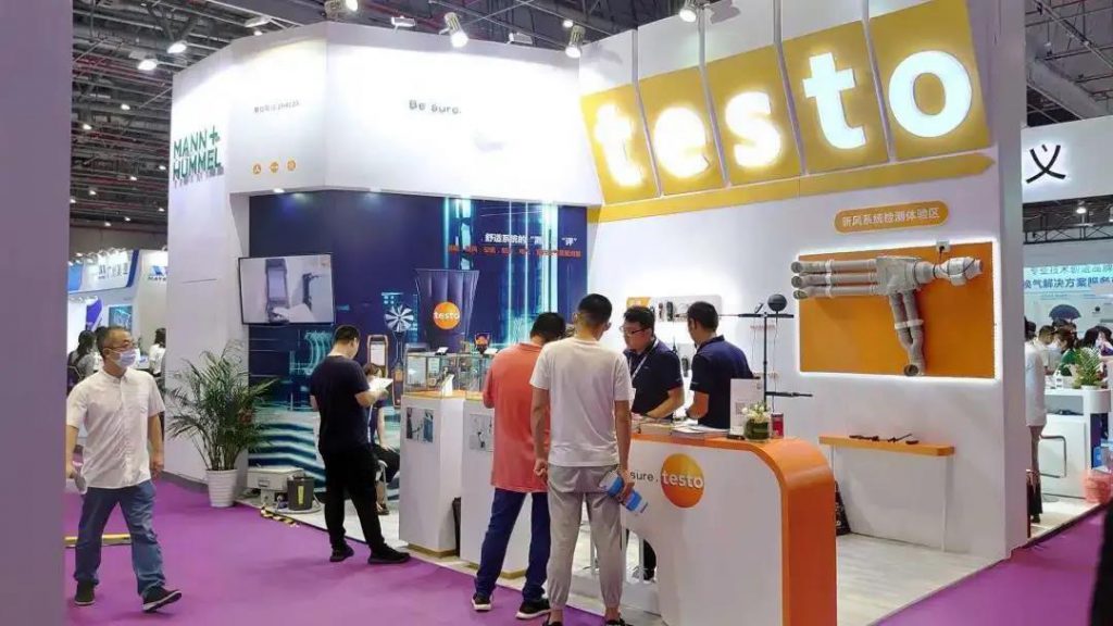 暖通空调是德图产品应用的重要领域之一。本次展会德图带来了testo300、testo400系列的检测产品,由主机配合不同的智能探头来完成各项测试。“在空调领域,德图在大力发展智能仪器。” testo德图仪器销售副总裁祁萌先生向记者介绍到,“这种产品小巧方便,产品功能可以灵活配置,测量数据还可以实时传递到手机端或者云端,便于后期的分析和保存。德图在传统的测试领域,正在把单一的小表集成到不同的主机上面来,这也是德图产品的发展方向。”本次德图的展示形式也比较多样化,现场安装有新风的主机,客户在展台可以实际体验测量,看到可视化的数据。