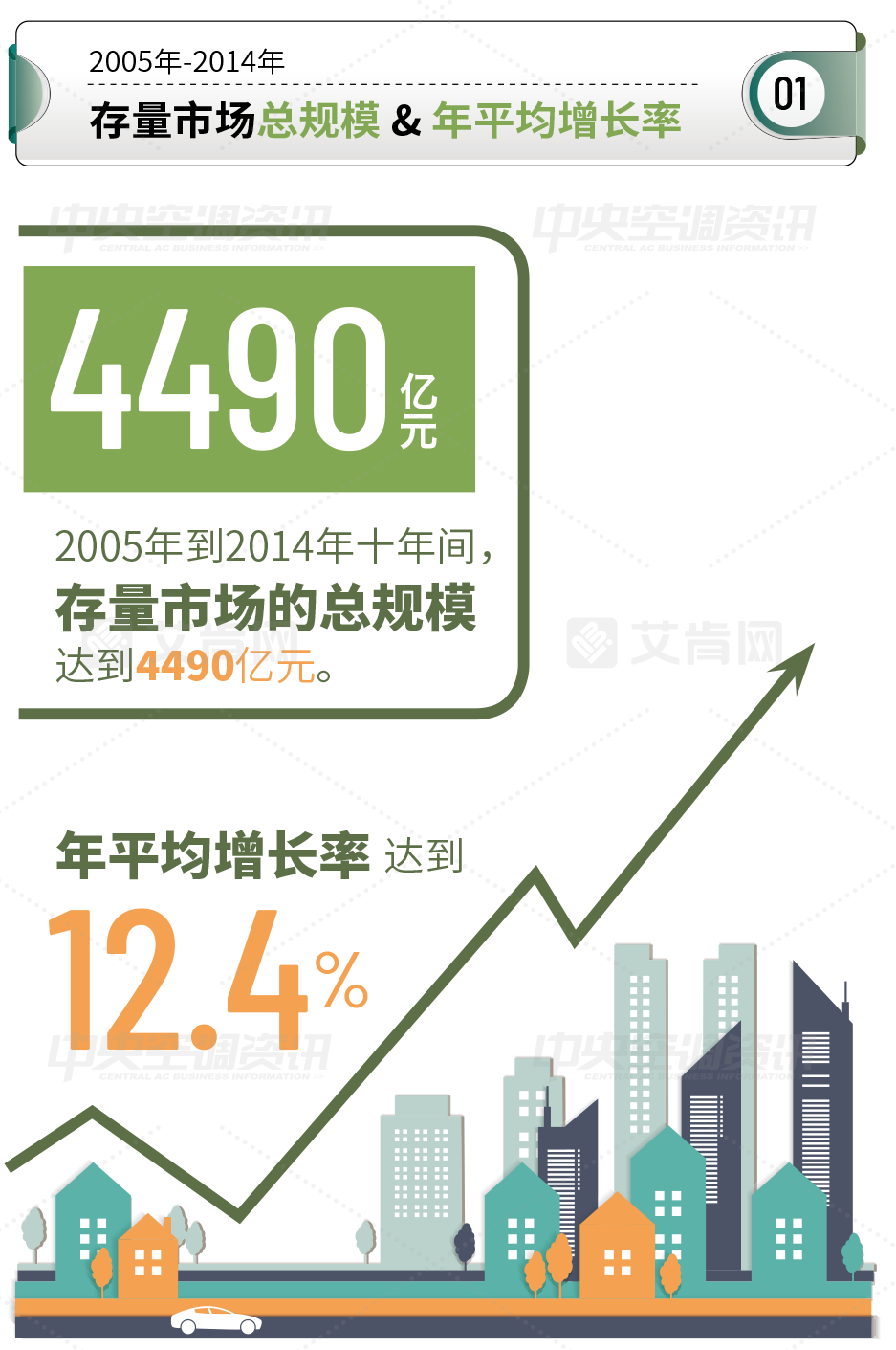 报告显示,2023版的存量市场报告统计范围是2005年-2014年期间,整体市场容量约为4490亿元,年平均增长率达到12.4%。从2005年开始,中国中央空调市场就开始进入高速发展期,连续4年的两位数增长,让市场容量快速扩容。